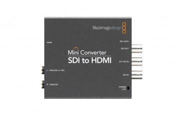 The SDI to HDMI Mini Converter from Blackmagic will accept an SDI signal and convert it to an HDMI output. You can also choose to de-embed SDI audio to balanced AES/EBU or analog audio outputs. Use this device to connect SDI-based equipment to big-screen televisions, video projectors, and other HDMI displays.